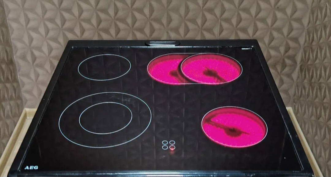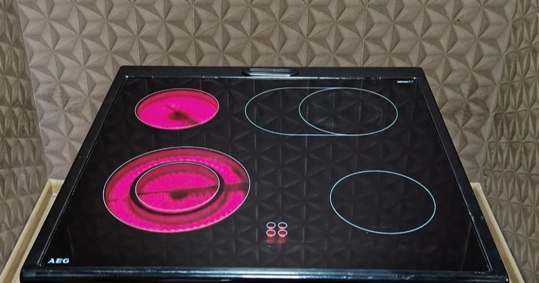 Šporet je opremljen „SCHOTT CERAN“ staklokeramičkom pločom sa 4 grejne zone A-energetske efikasnosti. Dve zone su sa proširenjem, što omogućava korišćenje posuđa različitih veličina. Četiri indikatora preostale toplote obezbeđuju sigurnost i energetsku efikasnost. Ploča je u dobrom stanju, sa uobičajenim tragovima korišćenja koji ne utiču na funkcionalnost.