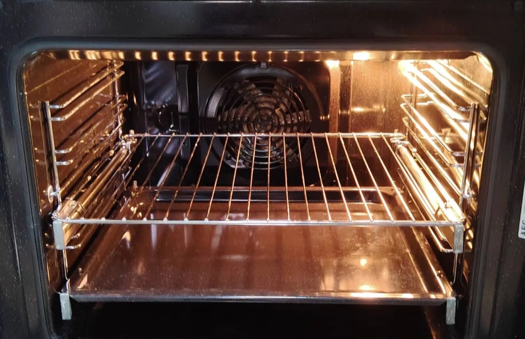 Unutrašnjost rerne je odlično očuvana i poseduje teleskopske police, što olakšava manipulaciju plehovima. Originalna rešetka i pleh su uključeni. Vrata rerne fabrički dihtuju prelepo, a kombinacija inoxa i kaljenog stakla sa velikom zaobljenom ručkom doprinosi elegantnom izgledu. Šporet poseduje i DC ventilator koji izbacuje hladan vazduh na vrata i kontrolnu tablu, štiteći Vas od opekotina i čuvajući kuhinju od rasušivanja i nastanka žutih mrlja. Komforna fioka za odlaganje plehova i tepsija dodatno doprinosi funkcionalnosti.