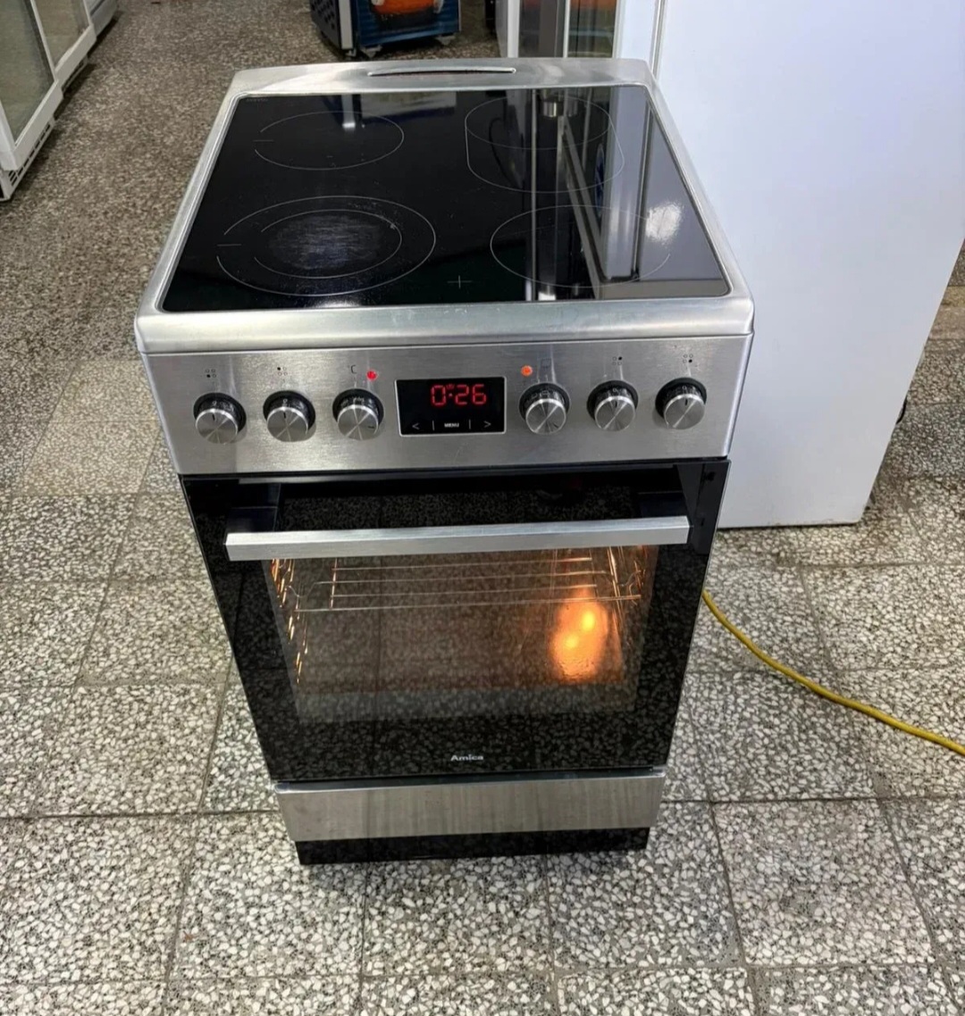 Polovan električni šporet renomiranog evropskog brenda „Amica“, u atraktivnoj inox varijanti, idealan za sve koji traže pouzdan i moderan uređaj za svakodnevnu upotrebu.