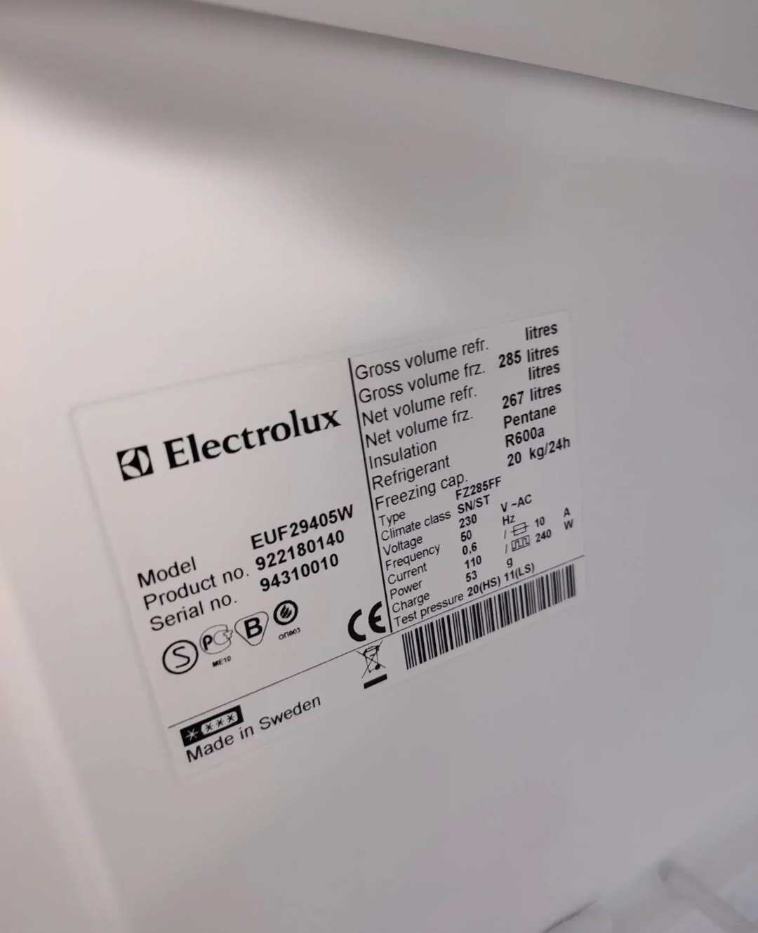 Electrolux EUF29405W je vrhunski vertikalni zamrzivač poznat po svojoj izdržljivosti i visokom kapacitetu zamrzavanja. Proizveden u Švedskoj, ovaj model nudi veliku zapreminu i preglednost zahvaljujući prostranim fiokama.Glavne karakteristike:•Model: EUF29405W•Zapremina: Neto 267 litara (Bruto 285L)•Kapacitet zamrzavanja: 20 kg / 24h•Poreklo: Made in Sweden•Dimenzije: Visina 180 cm, Širina 60 cm•Stanje: Odlično očuvan, proveren od strane serviseraMoguć prevoz.