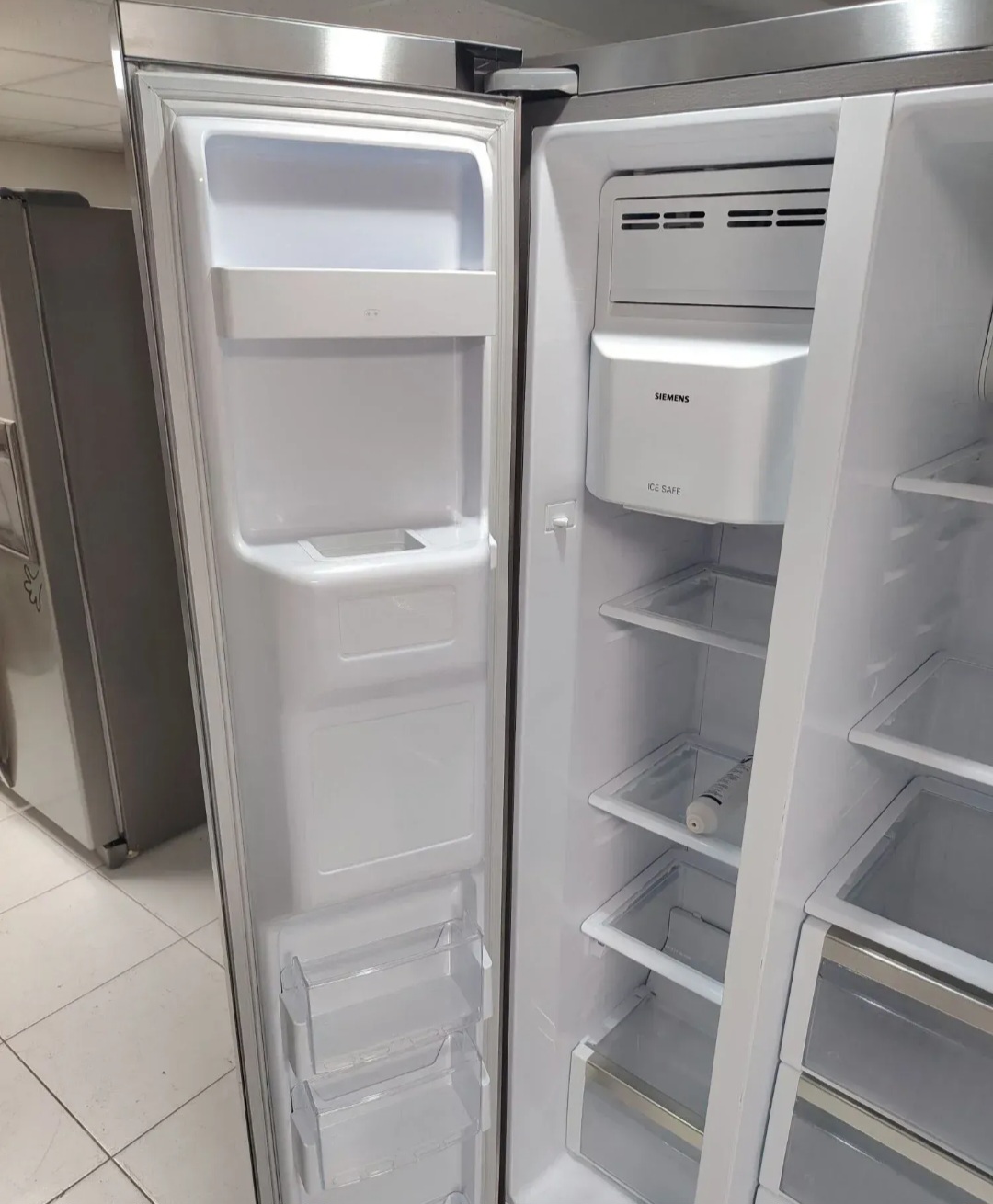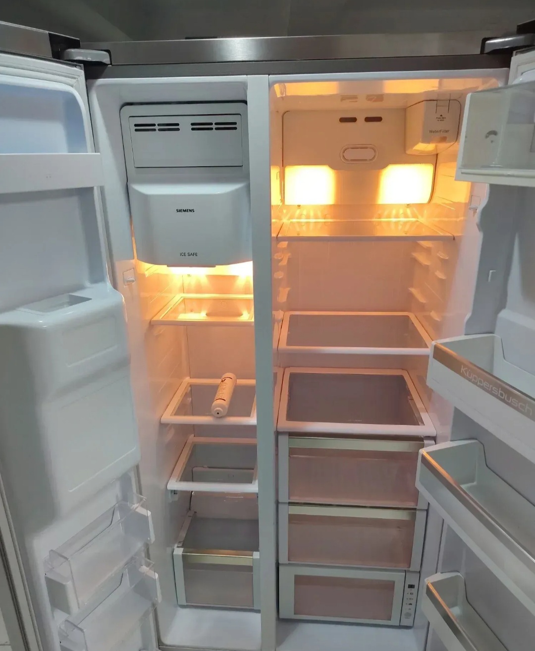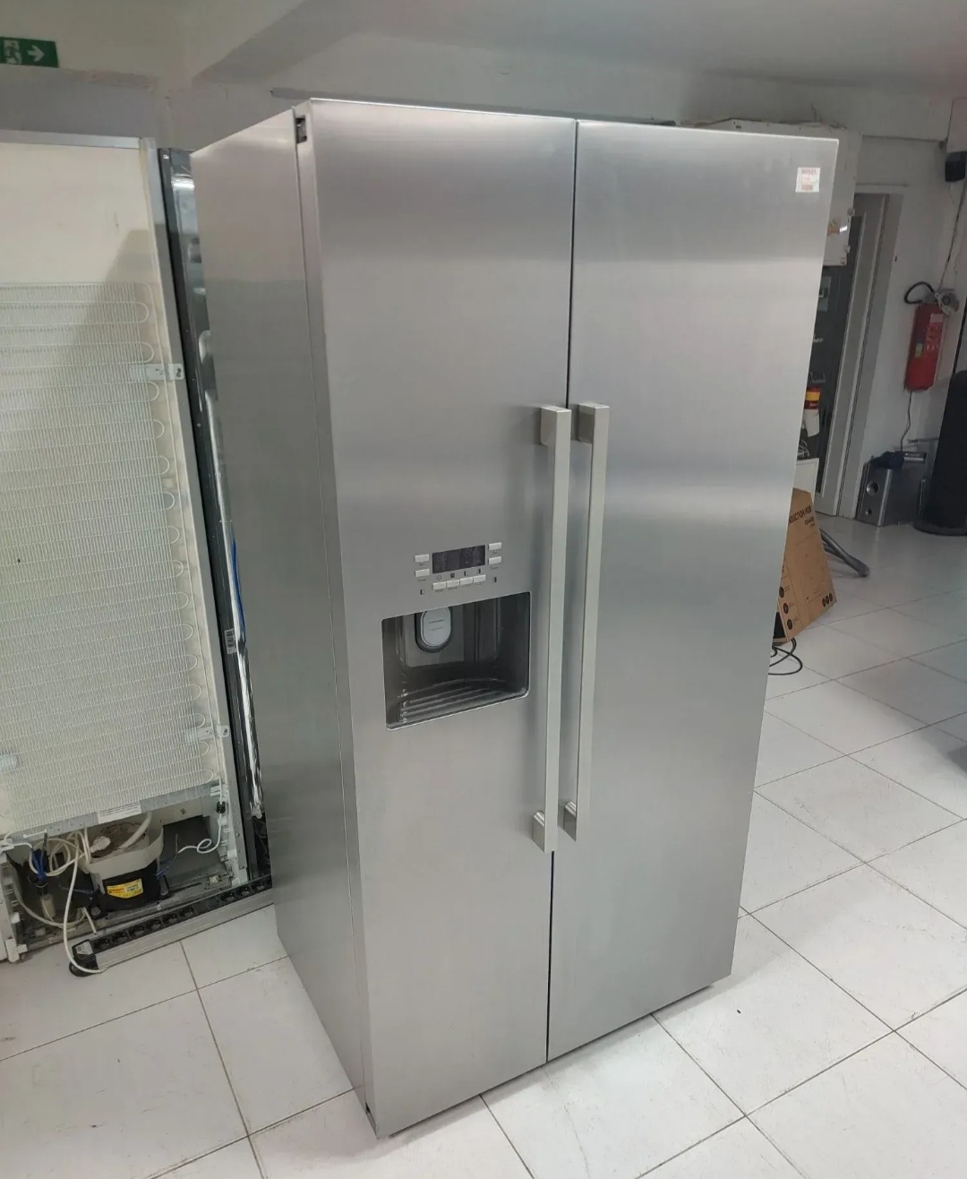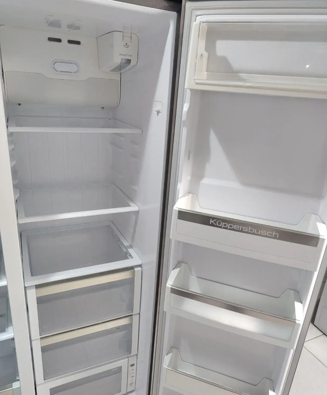 Küppersbusch KE590-1-2T je luksuzni Side-by-Side frižider koji kombinuje vrhunski nemački inženjering sa modernim dizajnom od nerđajućeg čelika. Opremljen je naprednim No Frost sistemom i automatskim dispenzerom za vodu i led.Glavne karakteristike:•Model: KE590-1-2T•Sistem hlađenja: No Frost (bez stvaranja leda)•Zapremina: Ukupno 500 litara neto (Frižider 330L + Zamrzivač 170L)•Dodaci: Dispenzer za hladnu vodu, kockice leda i mrvljeni led•Kontrola: Digitalni displej sa preciznim podešavanjem•Kapacitet zamrzavanja: 10 kg / 24h•Stanje: Odlično očuvan, proveren od strane serviseraMoguć prevoz.
