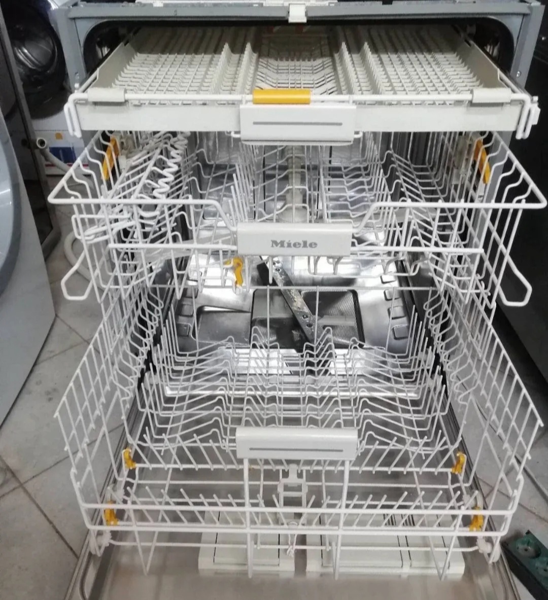 MIELE G 5635 SCi edition 3D eco Made in GERMANY. Ugradna Inoks Sudo masina svetski najpoznatije Nemacke fabrike, fabrike koja proizvodi, najmasivnije, najkvalitetnije i najdugovecnije uredjaje bele tehnike na svetu. Inox ugradna Sudo masina za 14 kompleta u Ekstra stanju uvezena iz Nemacke . Masina je digitalna poseduje LCD tekstualni displej koji pokazuje vreme pranja i vreme odlozenog starta, koji program pranja je uključen . Masina poseduje 6 posebnih programa pranja uz dodatak turbo koji ubrzava vreme pranja. Poseduje brzi program od 38minuta sa dodatkom turbo zavrsava za 12minuta. Posle velikog programa pranja uz pomoć servo brave vrata se otvaraju automatski kako bi izasao visak vodene pare. Masina spada u A +++ klasu energetske efikasnosti sto znaci da je izuzetno stedljiva. Masina poseduje 3D korpe za posudje. Srednja korpa za sudove ima mogućnost podešavanja visine u tri nivoa, gornja korpa za escajg ima mogucnost dodatnih podesavanja. Masina je probana detaljno i radi perfektno, za svaku preporuku. Izuzetno je kvalitetna, odlicno je ocuvana ima sitnih tragova koriscenja. Masina kraj pete generacije nova kosta oko 1280franaka. Dimenzije su: visina 84cm, sirina 60cm.
