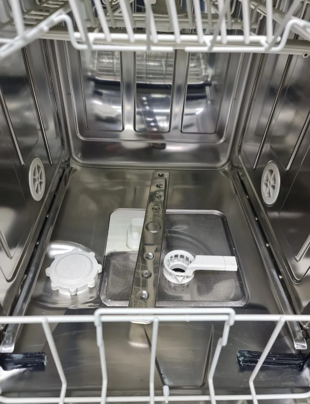 Masina je kapaciteta 9 kompleta, polu ugradna – podpultna, 3 korpe i 3 prskalice