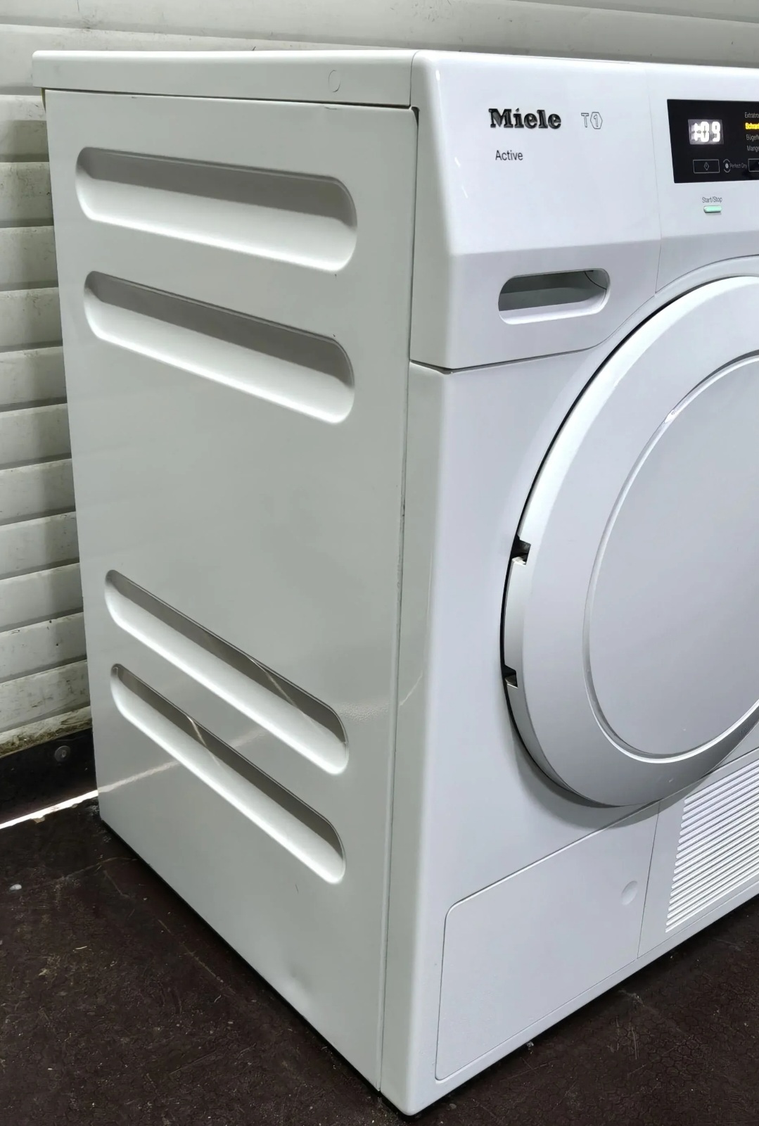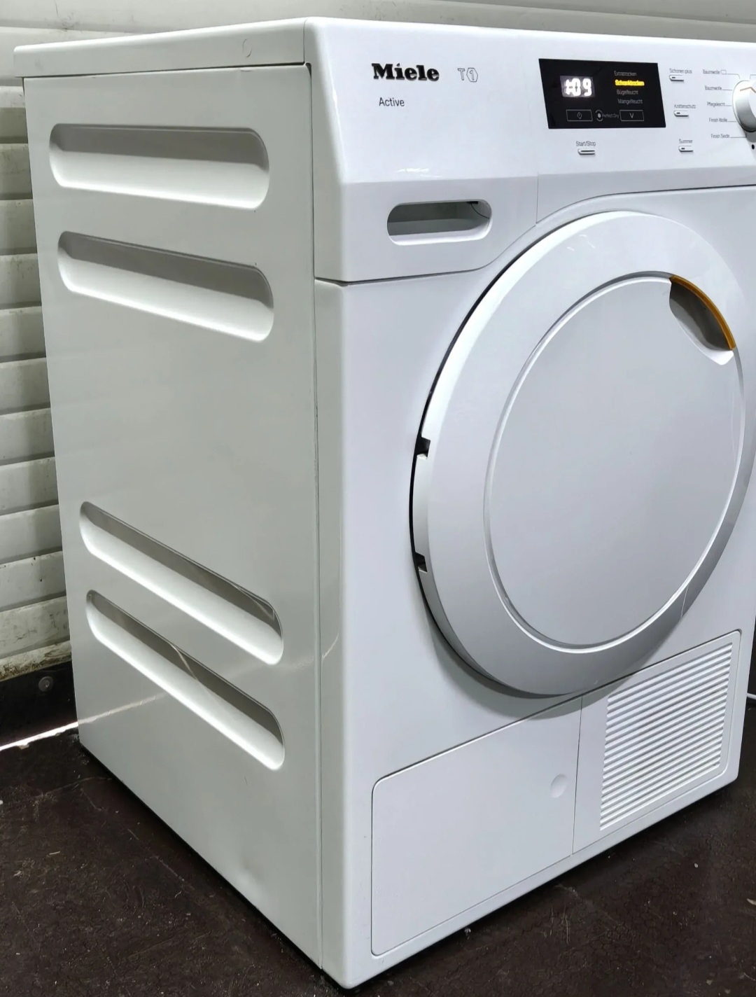 Miele T1 Active kondenzaciona mašina za sušenje veša sa toplotnom pumpom, testirana i radi besprekorno. Mašina je u odličnom stanju, sa blagim oštećenjem na levoj bočnoj strani, vidljivim na slici. Model TKB 155 WP, zemlja porekla Nemačka. Dimenzije 60cm x 60cm. Poseduje saćasti inox bubanj za maksimalnu negu i zaštitu tkanina, kao i odloženi start. Kapacitet veša je 8kg. Inverter tehnologija obezbeđuje maksimalnu uštedu energije, a energetski razred je A+++. Dostupni su automatski programi sušenja za sve tipove tkanina. Garancija 6 meseci. Moguć prevoz.