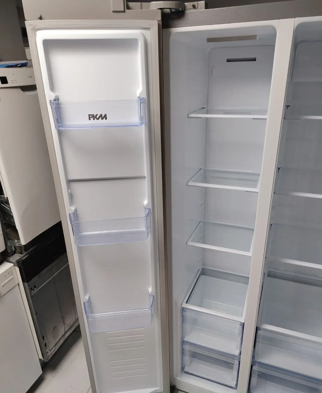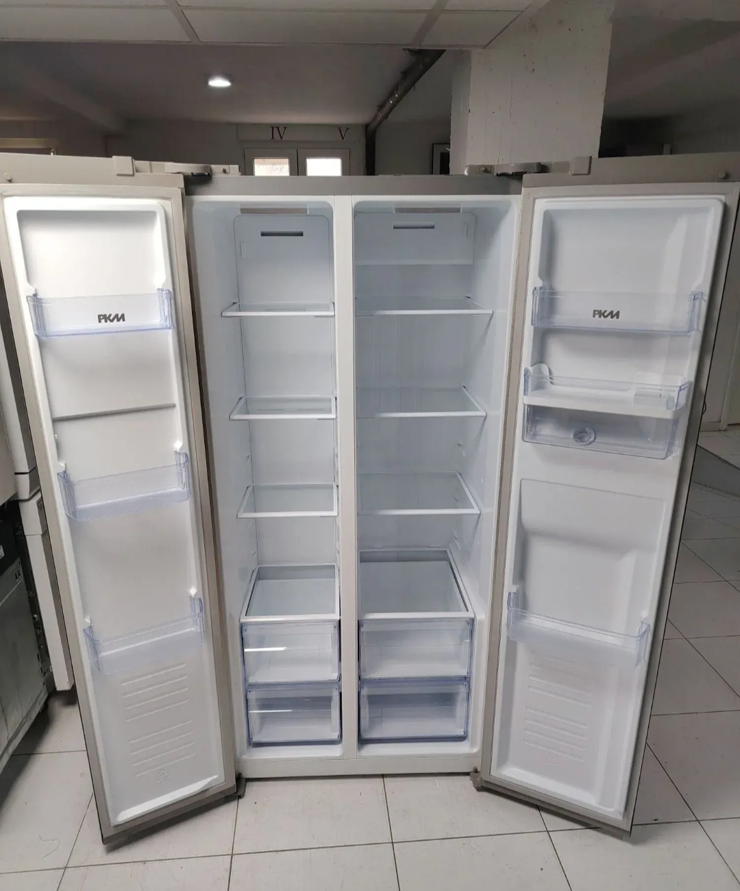 Predstavljamo Vam PKM Side-by-Side frižider model SBS267-165.4A+NFIX, dizajniran da zadovolji sve potrebe modernog domaćinstva. Sa ukupnim kapacitetom od 472 litra, pruža obilje prostora za skladištenje svih Vaših namirnica.Ključna karakteristika ovog modela je NoFrost tehnologija u oba dela (frižideru i zamrzivaču), koja sprečava stvaranje leda i eliminiše potrebu za ručnim odmrzavanjem, čime štedi Vaše vreme i energiju.Uživajte u osvežavajućoj hladnoj vodi u svakom trenutku zahvaljujući integrisanom dispenzeru za vodu na vratima. Unutrašnjost frižidera je osvetljena štedljivim i efikasnim LED svetlima, pružajući jasan pregled svih namirnica.Elegantan Inox finiš daje ovom frižideru sofisticiran izgled koji se lako uklapa u svaki enterijer. Sa dimenzijama 188cm (visina) x 93cm (širina) x 72cm (dubina), savršeno se uklapa u prostrane kuhinje. Kontrolna tabla na dodir (Modus, Gefrieren, Kühlen, Tastensperre) omogućava jednostavno upravljanje svim funkcijama
